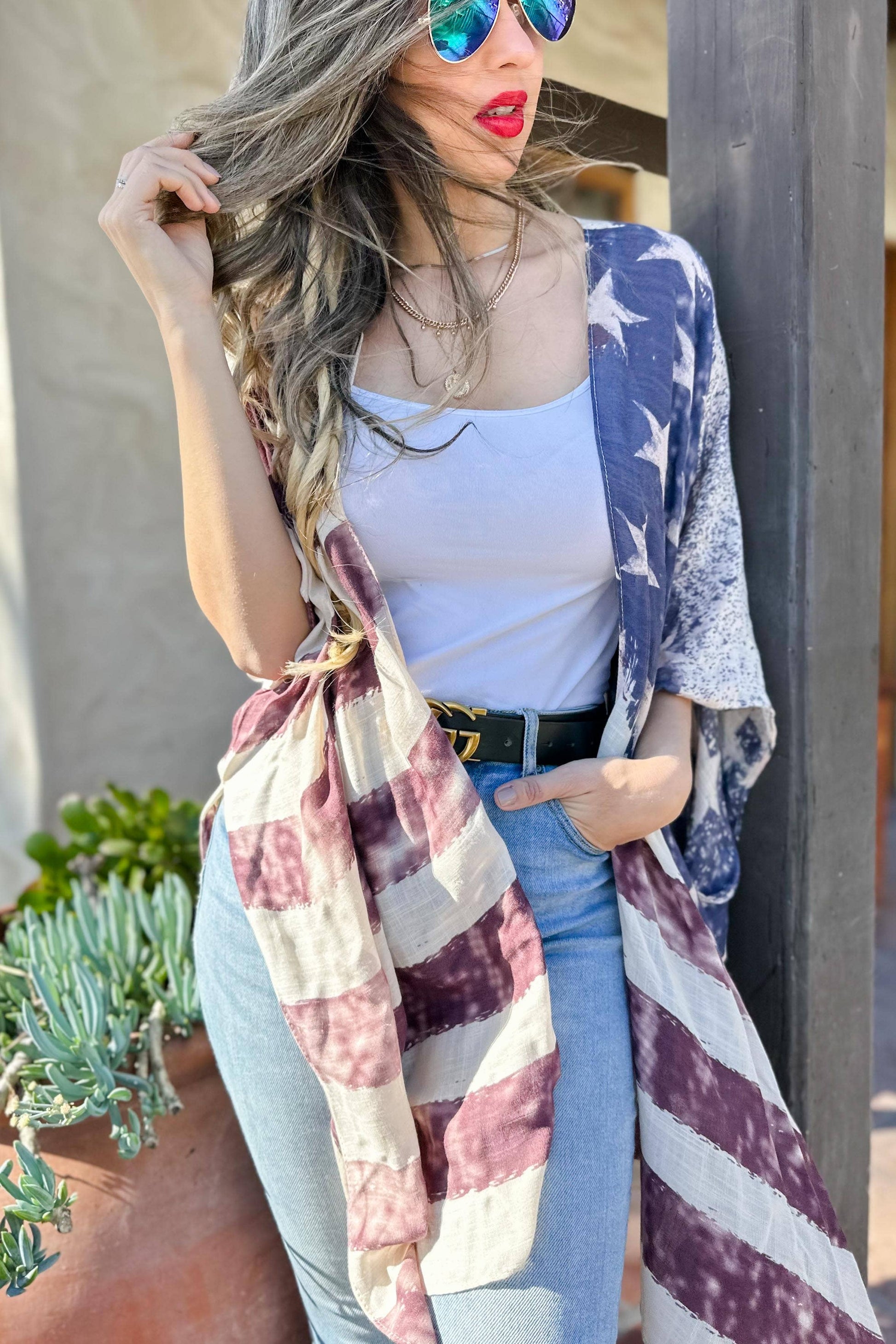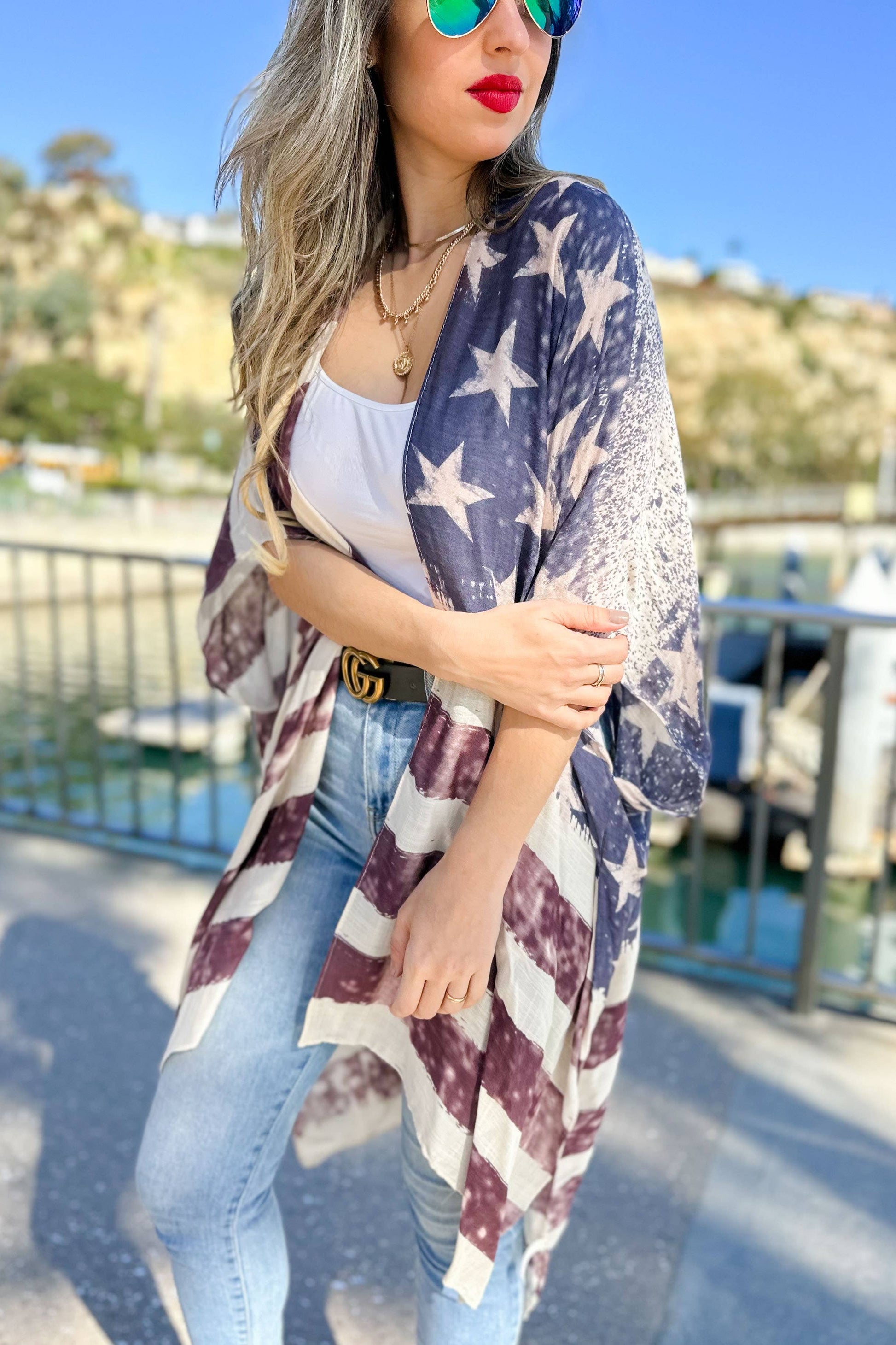 4th of July Vintage American Flag Printed Kimono Cover Up